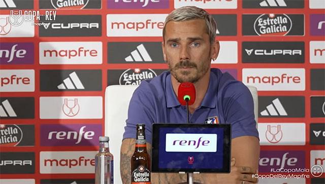 本周末,马竞将向本赛季第一个冠军发起冲击,他们将在塞维利亚的奥林匹克体育场与皇家社会展开国王杯决赛的争夺,前锋格列兹曼代表球队出席了赛前的新闻发布会。