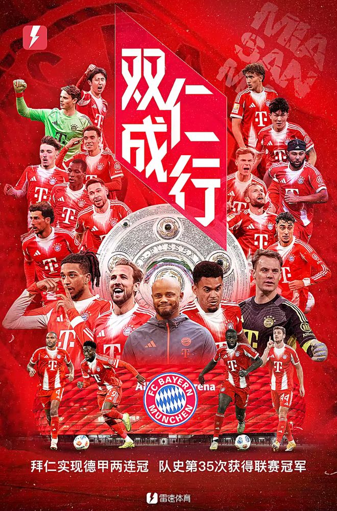 4月19日,德甲第30轮,拜仁在安联球场以4-2逆转斯图加特,提前4轮锁定2025-26赛季德甲冠军。这是拜仁队史第35次德国顶级联赛冠军,也是近14个赛季的第13次捧杯。